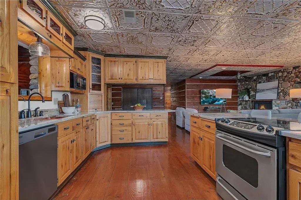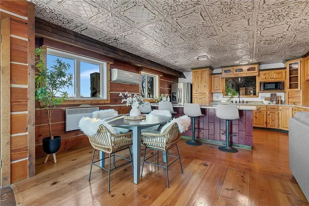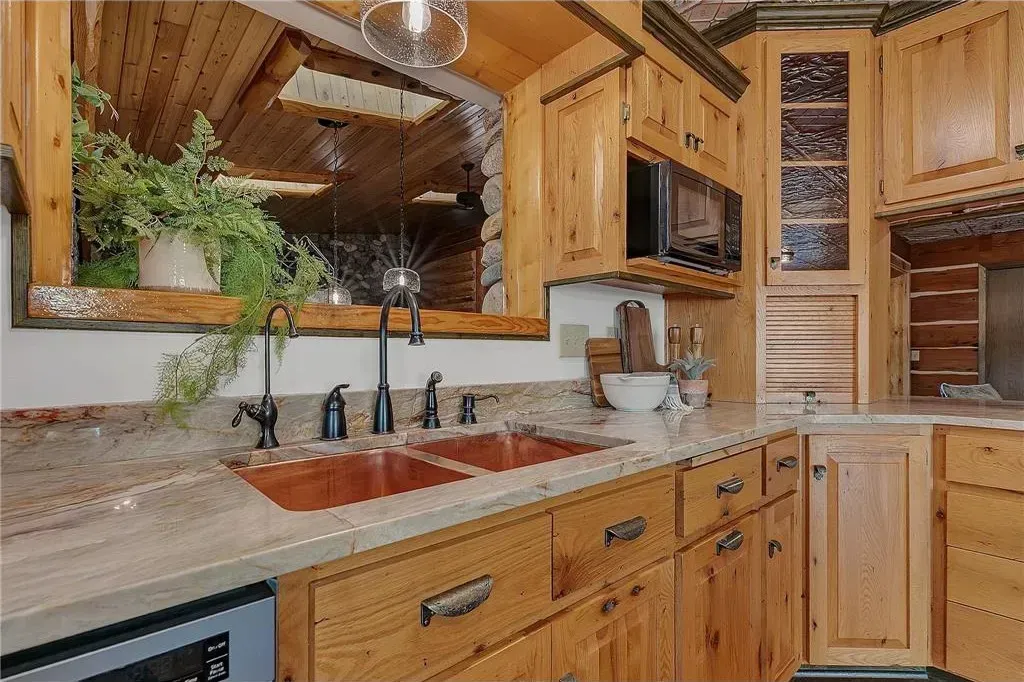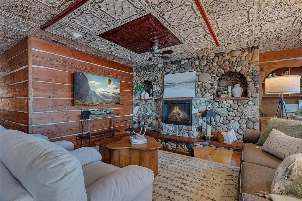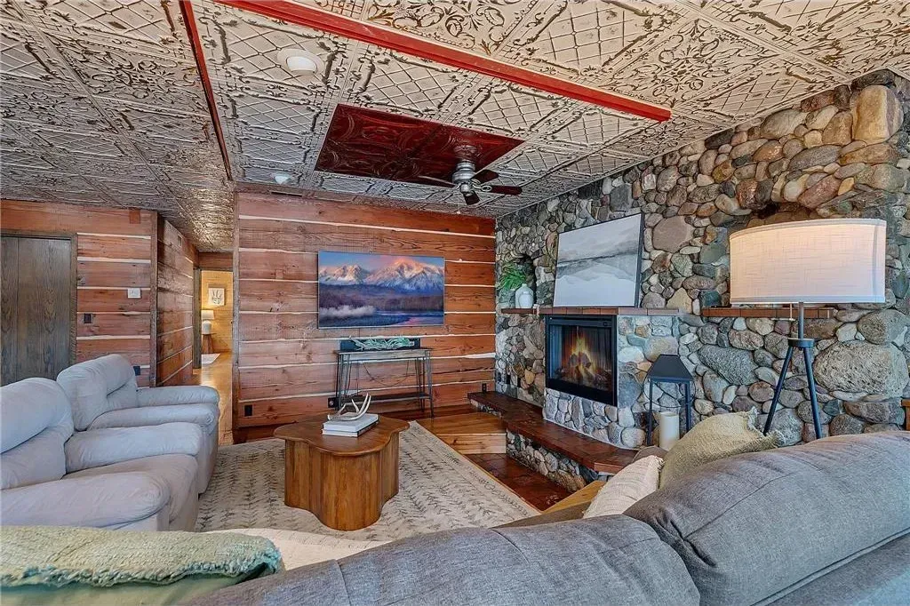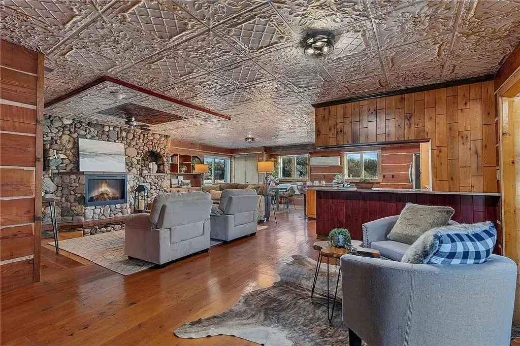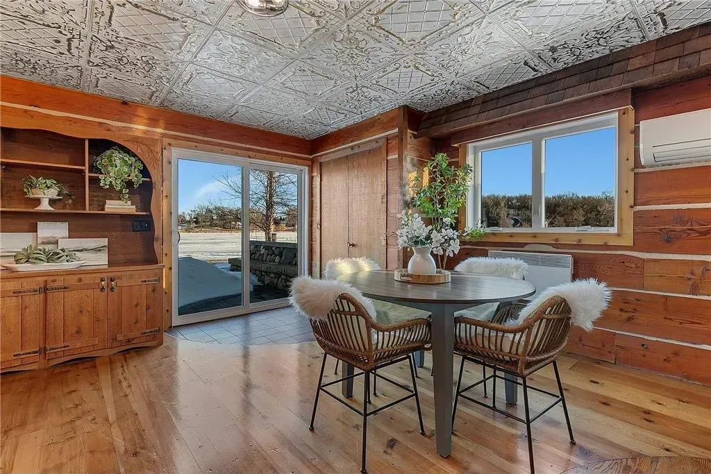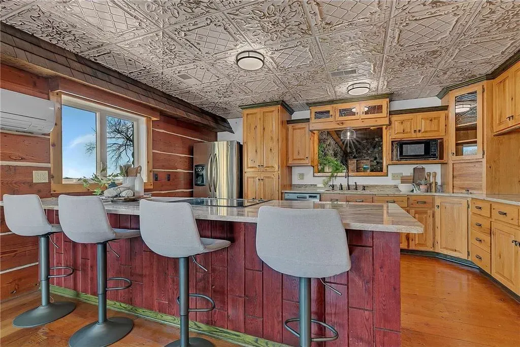 The original 1979 home was transformed with a thoughtfully designed addition featuring in-floor heat throughout, including the upper level above the garage. Inside, the home is rich with character and authentic materials rarely seen today—travertine tile, cut stone, fieldstone, Douglas fir flooring, oak doors, cedar ceilings, stamped steel ceilings, and stunning masonry details throughout. Stone, brick, wood, and log walls blend seamlessly, all finished with meticulous attention to detail. The lakeside four-season sunroom offers panoramic water views and year-round enjoyment, while the home’s built-in swim spa and wet bar create the perfect space for entertaining and relaxing after a day on the lake. The septic system is compliant, and the dock is included, making lake life easy from day one. Recent exterior improvements include a new tarred driveway (2024), new concrete apron surrounding the home, and rock retaining walls added in 2021, enhancing both function and curb appeal. Also included is a remarkable heated workshop/barn, built over a new foundation using salvaged rafters and flooring from a historic local barn. This space features a ½ bath, room to service vehicles—including oil changes—and endless possibilities for hobbies, storage, or year-round projects. Set on Kandiyohi County and located on Games Lake, known for excellent boating, fishing, and recreation, this property is unlike anything else on the market—crafted with intention, built with real materials, and designed to be enjoyed for generations.